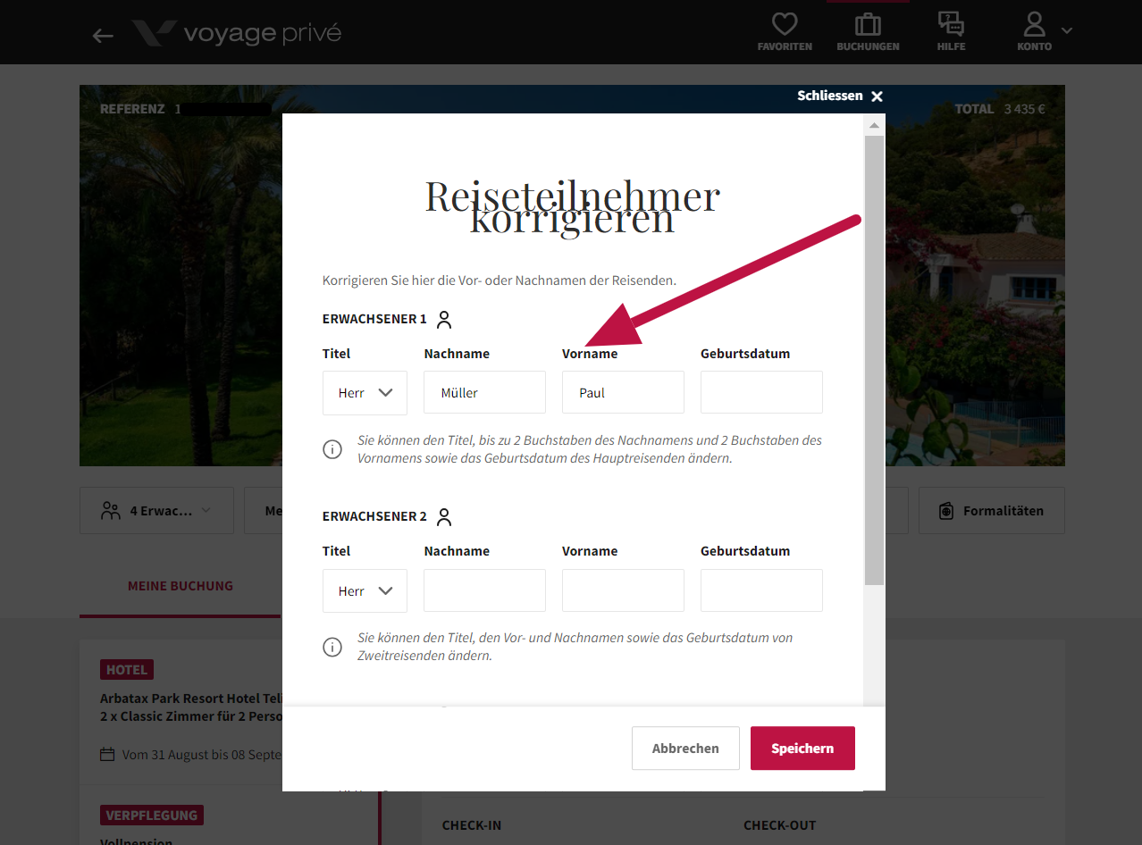 Ich möchte die Anrede eines Reisenden ändern, wie kann ich das tun?